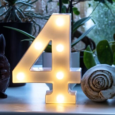 1 x 22cm LED Light Up Number 4 White Birthday Party Celebration Stand / Hang