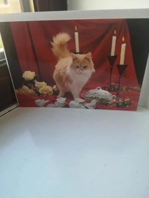 Birthday , Greetings Card, with White , Envelope, Cat on Dining Table