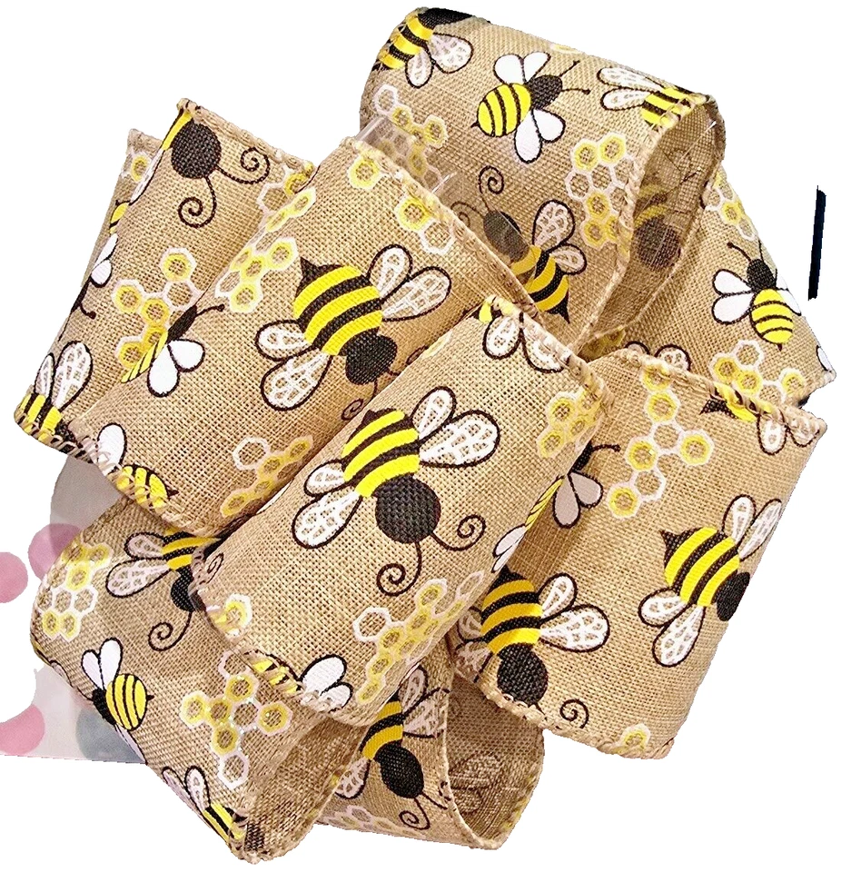 1 Metre Length Excellent Quality Wire Edge Ribbon 6.3cm - Bee Happy