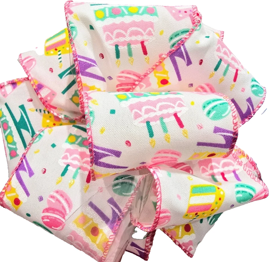 2 Metre Length Excellent Quality Wire Edge Ribbon 6.3cm - Happy Celebration Cake