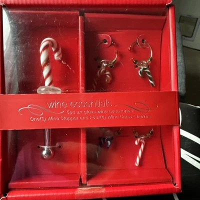 Wine Essentials 5 Pieces Wine Accessories CC Bottle Stopper & 4 Wine Glass Charm