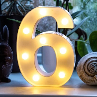 1 x 16cm LED Light Up Number 6 Birthday Anniversary Retirement White