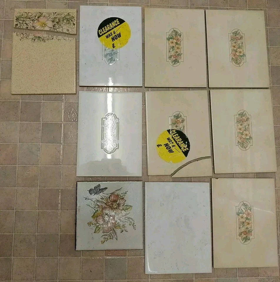 10 x Odd Floral Ceramic Oblong Wall Tiles Collect: Fleet, GU51