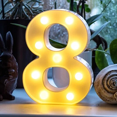 1 x 22cm LED Light Up Number 8 White Birthday Party Celebration Stand / Hang