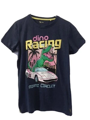 Tu Kid's Junior Boy's Size 12 Years Navy Dino Racing Miami Circuit T-Shirt VGC