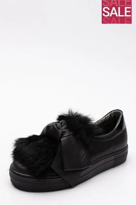 RRP€130 JARRETT Kids Leather Sneakers US4 EU36 UK3 Bow Rabbit Fur