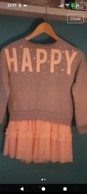 Girls Jumper Dress Age 8 Years - Grey Jumper Happy With Pink Tutu Skirt