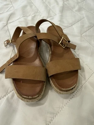 Hot Cakes Girls Platform Brown Strap Sandals, Size 11.5 With Gold Buckle