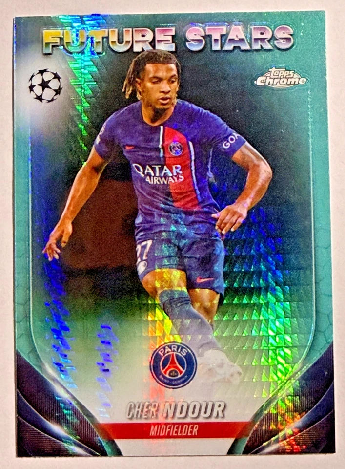 Cher Ndour - PSG, Topps Chrome, Aqua Prism UCC Champions Trading Card