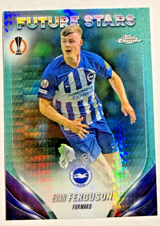 Evan Ferguson - Brighton , Topps Chrome, Aqua Prism UCC Champions Trading Card