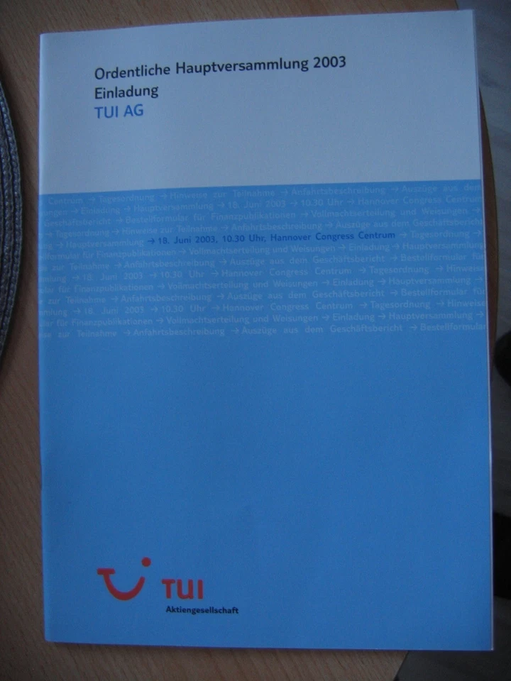 Einladung zur Hauptversammlung der TUI AG 2003 Tagesordnung Geschäftsverlauf