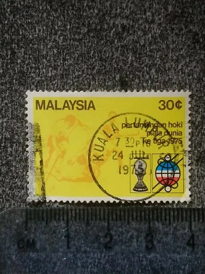 Used 1975 Malaysia 30c stamp. The 3rd World Cup Hockey Championships. VGC.