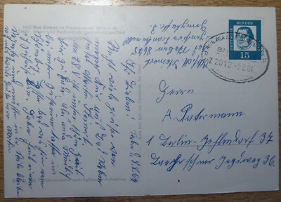 Postcard Bad Steben with railway postmark 1964, good condition, see photos.