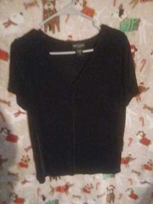 Bay Studio Career Shirt Womens MED Black Short Sleeve Pullover Blouse