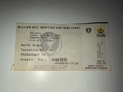 Aberdeen v Celtic Scottish Cup Semi Final Ticket Hampden 14 April 2019