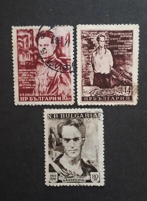 BULGARIA STAMPS 1952, SC# 777-9, FULL USED SET, NIKOLAI VAPZAROV-POET AND...