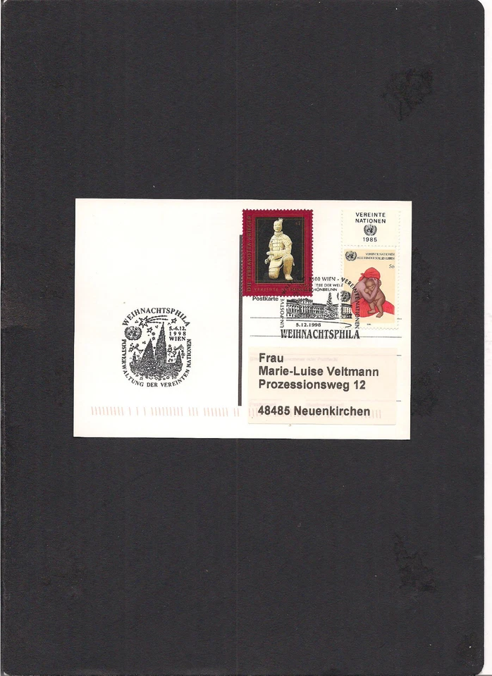 UN card "Christmas Phila 05.12.1998" really used, see scan