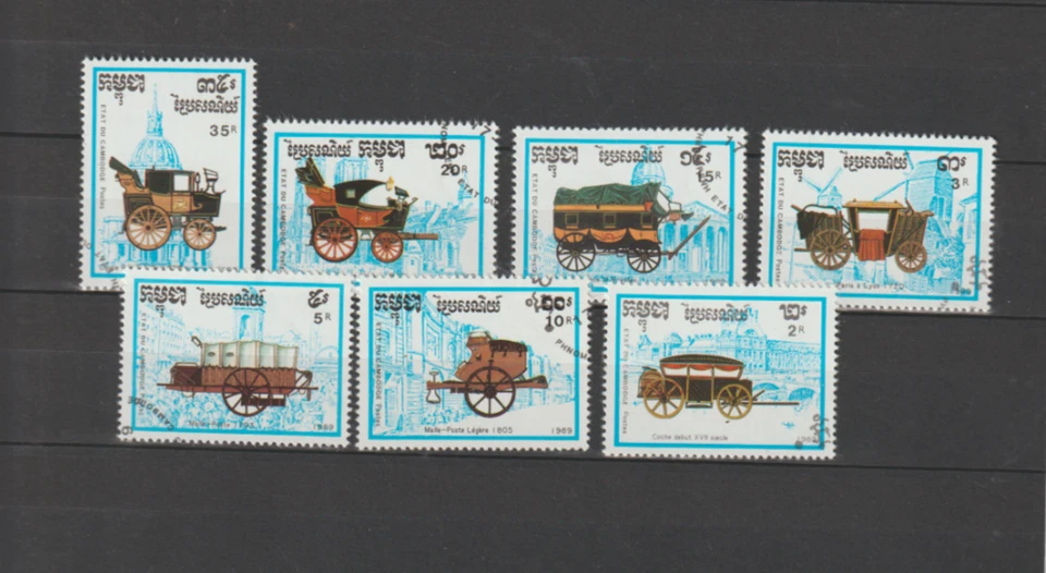 Complete set-Hist.-Asian carriages-Cambodia 1989-stamped-excellent