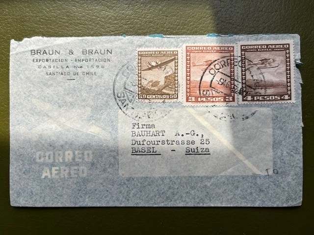 Stamps, Chile, Airmail - Cover to Basel-Switzerland circa 1948