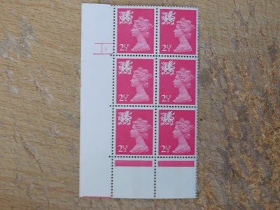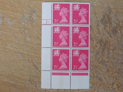 UNM 2.5p FCP/GA cyl block of 6 Harrison cyl 3 dot - Wales