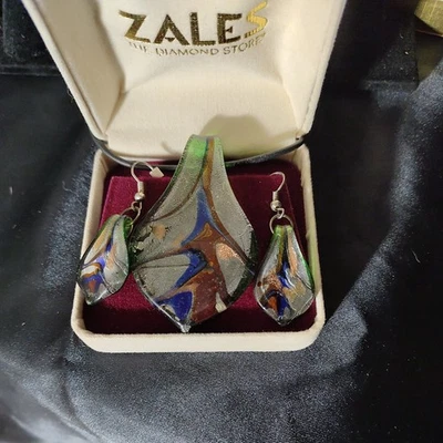 Gorgeous Necklace And Earrings Set Blown Glass Tear Drop