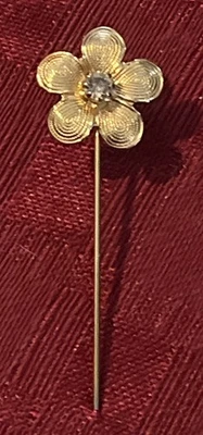 Vintage Gold Tone Crystal Flower Stick Pin