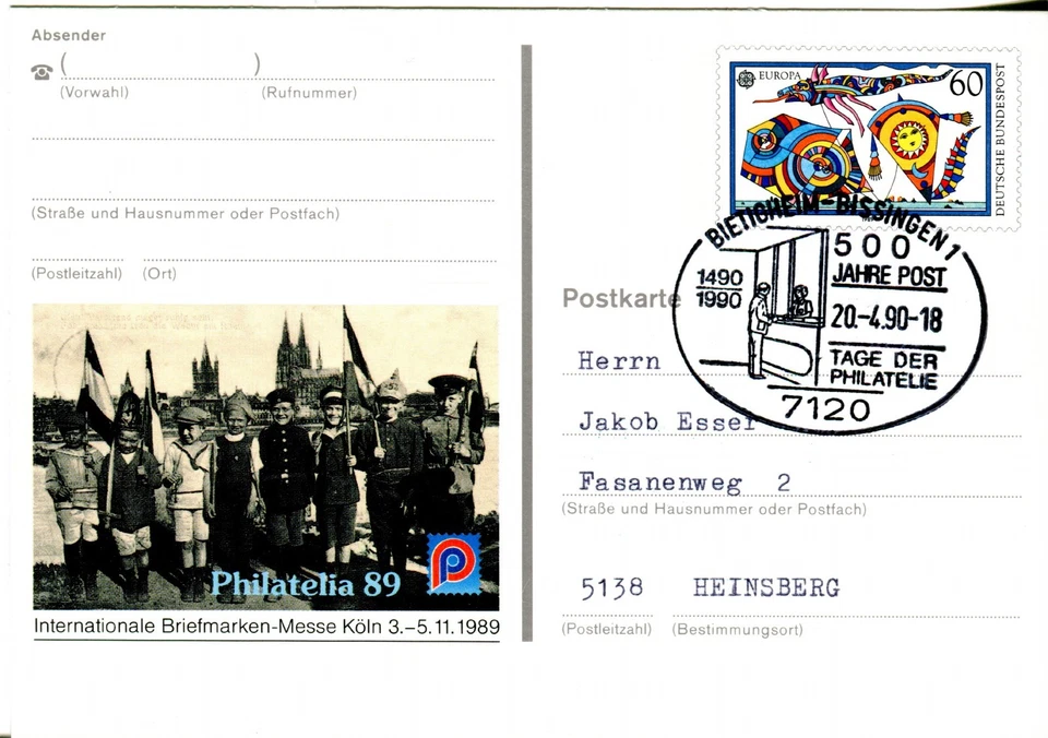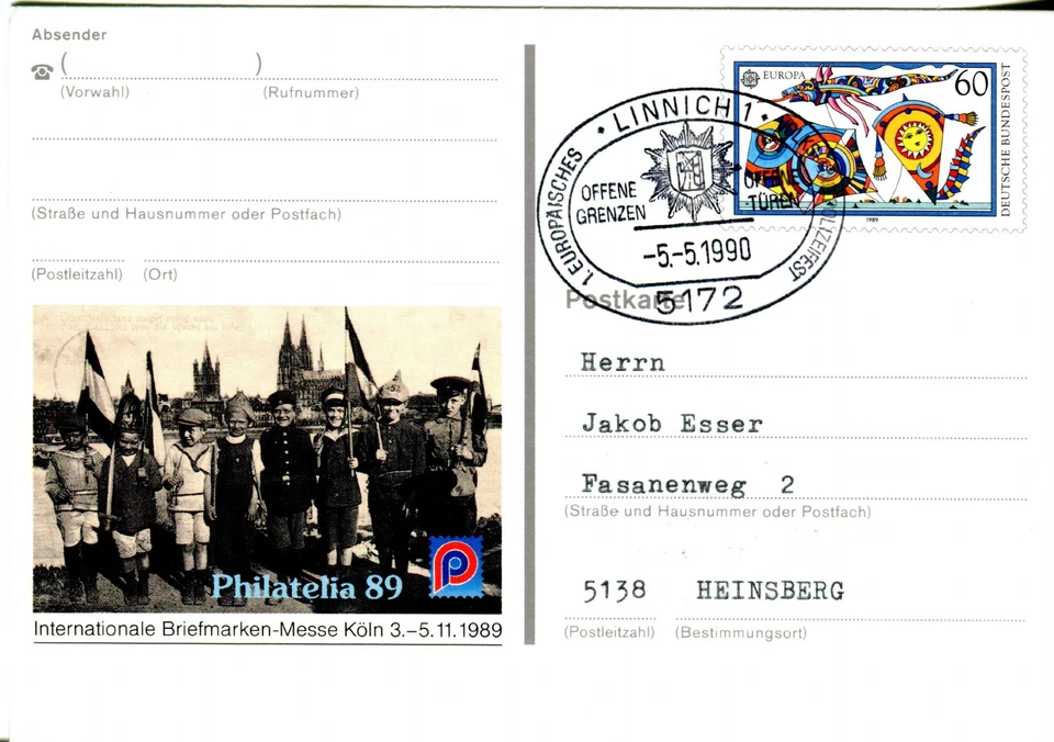 1990 Germany. Linnich 1 postmark Philatelia 89, Europa 60pf Stationary Postcard