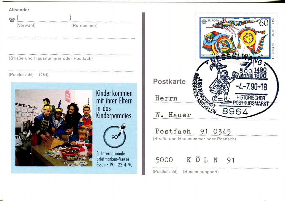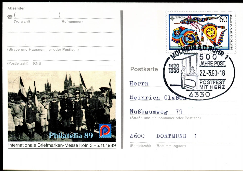 1990 Germany. Mulheim Ruhr pm on Philatelia 89, Europa 60pf Stationary Postcard