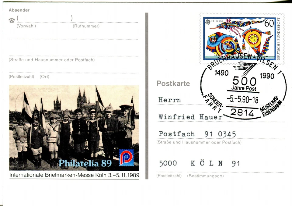 1990 Germany Bruchhausen Vilsen pm Philatelia 89 Europa 60pf Stationary Postcard
