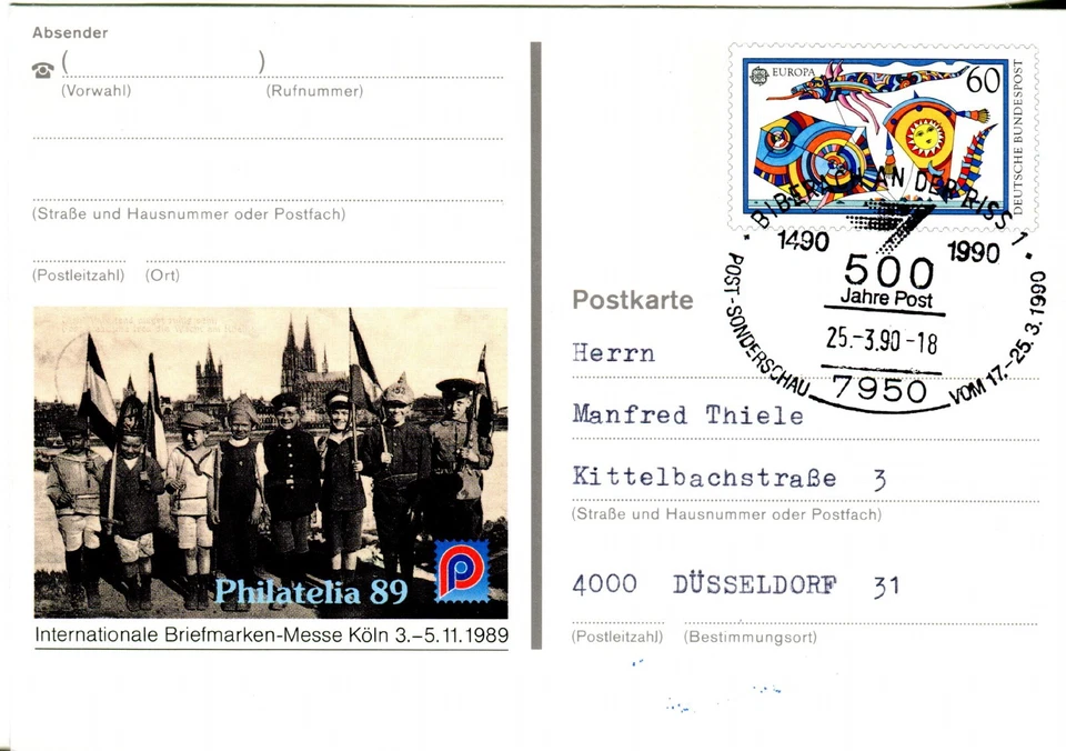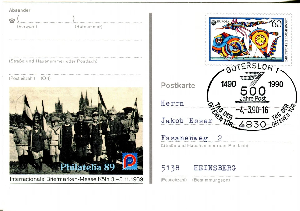 1990 Germany. Gutersloh postmark Philatelia 89, Europa 60pf Stationary Postcard