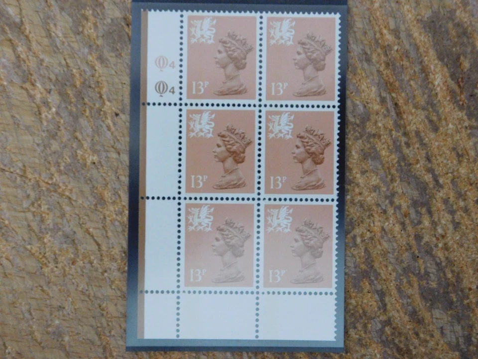 UNM 13p cyl block of 6 Questa Q4Q4 - Wales
