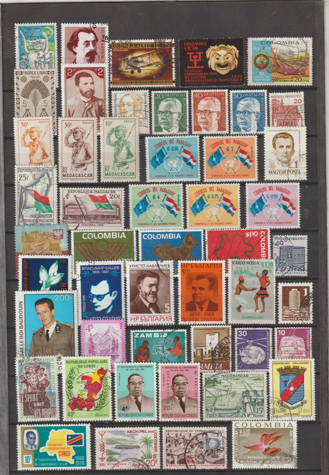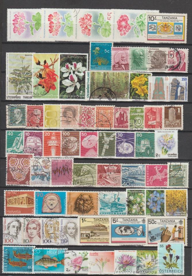 LOT Stamps Motifs From Around The World - A4 Card Fully Stamped + MNH 011