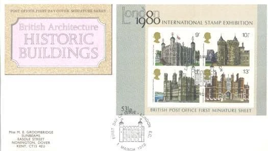 1978 Historic Buildings Miniature Sheet - London EC H/S FDC.