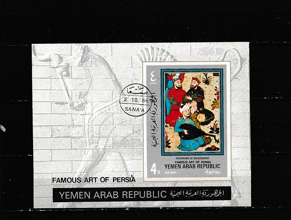 Block-Famous Art of Persia--Issued 1968 from Yemen (Republic)--Stamped
