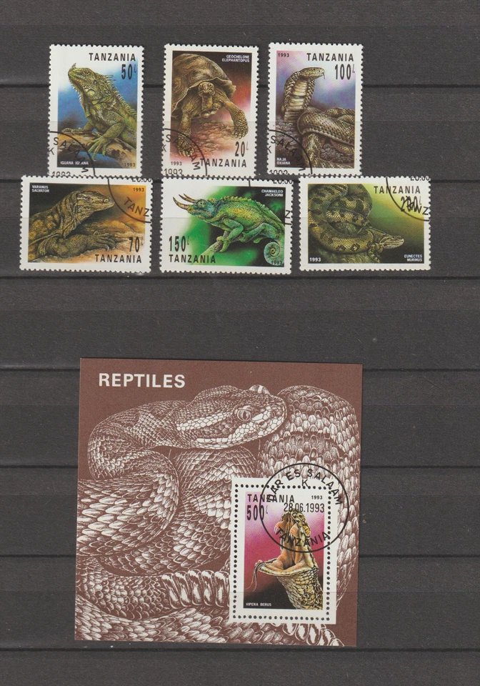 Reptiles-Snakes-Lizards-Block + Stamps-Stamped-Tanzania-1993-EXCELLENT