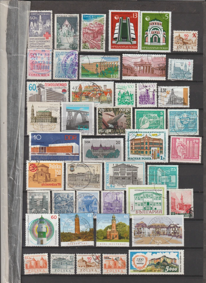LOT - Stamp Buildings From Around The World - A4 Card Full --Stamped 001