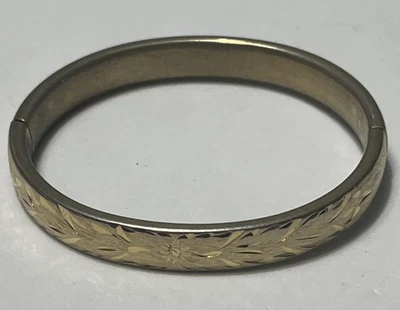 Vintage Gold Tone Etched Floral Design Bracelet