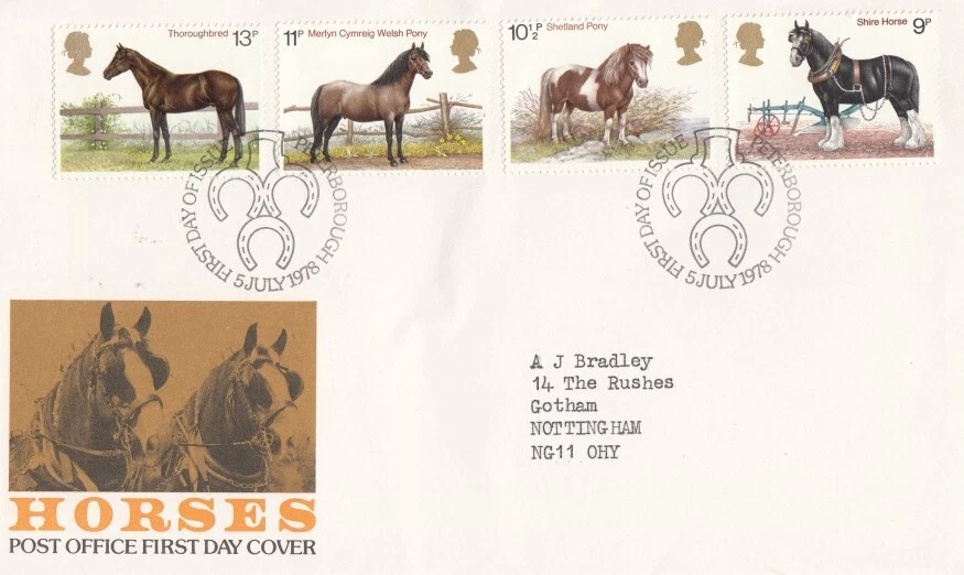 1978 Horses - Peterborough H/S FDC.