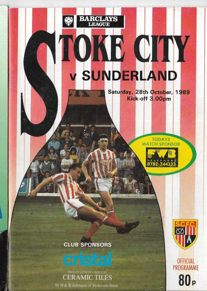 STOKE CITY V SUNDERLAND 28/10/1989 DIVISION 2 (B1)