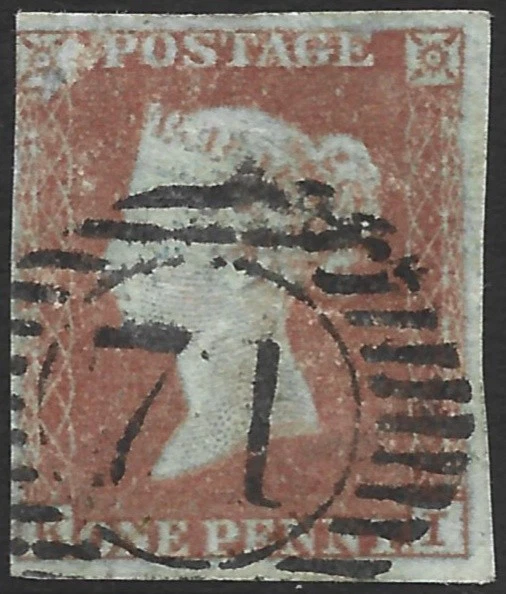 GB QV 1841 SG#8, 1d Penny Red, Imperf, Corner Letters KI, Used #F15711