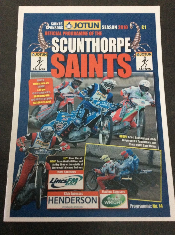 2010 SCUNTHORPE SAINTS v BOURNEMOUTH BUCCANEERS 25th JUNE ( GOOD CONDITION )