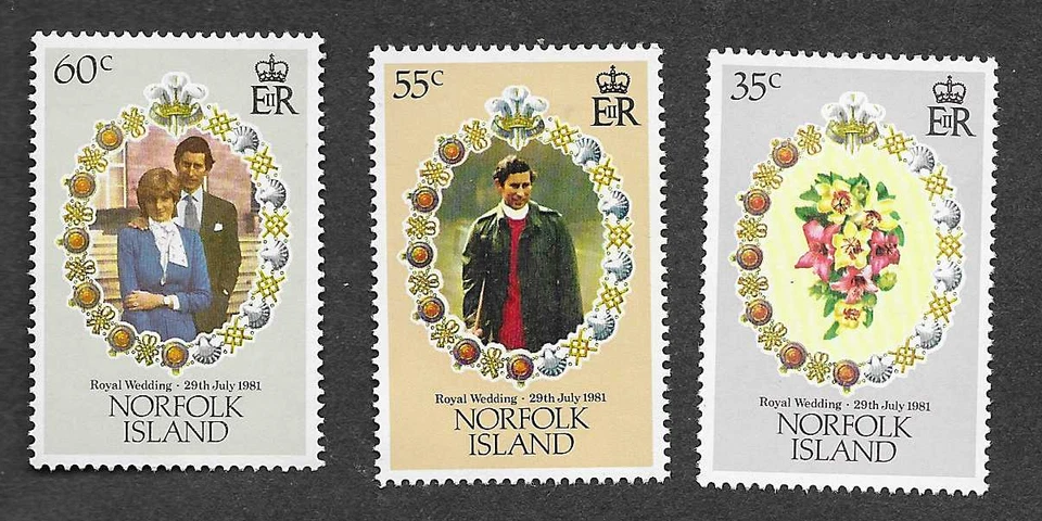 MNH set 3 stamps 1981 Norfolk Island Royal Wedding Charles & Diana