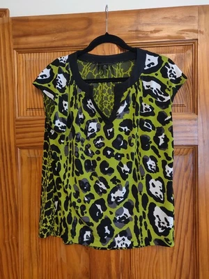 WORTHINGTON Black/Green Polyester Leopard Print Short Sleeve Blouse, size PL
