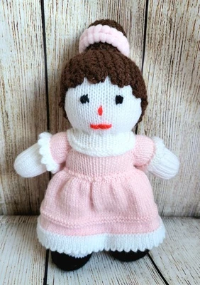 Hand Kinitted Ballerina Doll, Wool, Pink Dress,