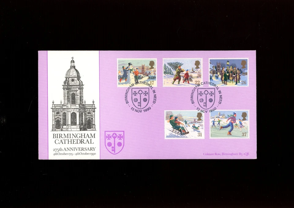 1990 Christmas Bradbury FDC Birmingham Cathedral In Need H/S.