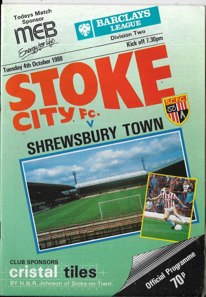 STOKE CITY V SHREWSBURY TOWN 4/10/1988 DIVISION 2 (B1)