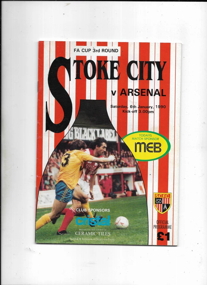 STOKE CITY V ARSENAL 6/01/1990 FA CUP 3RD ROUND (B1)