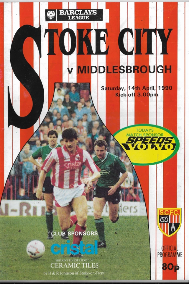 STOKE CITY V MIDDLESBROUGH 14/04/1990 DIVISION 2 (B1)