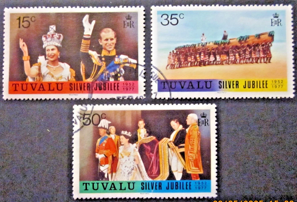 TUVALU ~ S.G. 50 - 52 ~ 1977 SILVER JUBILEE STAMPS OMNIBUS ~ VFU #05012